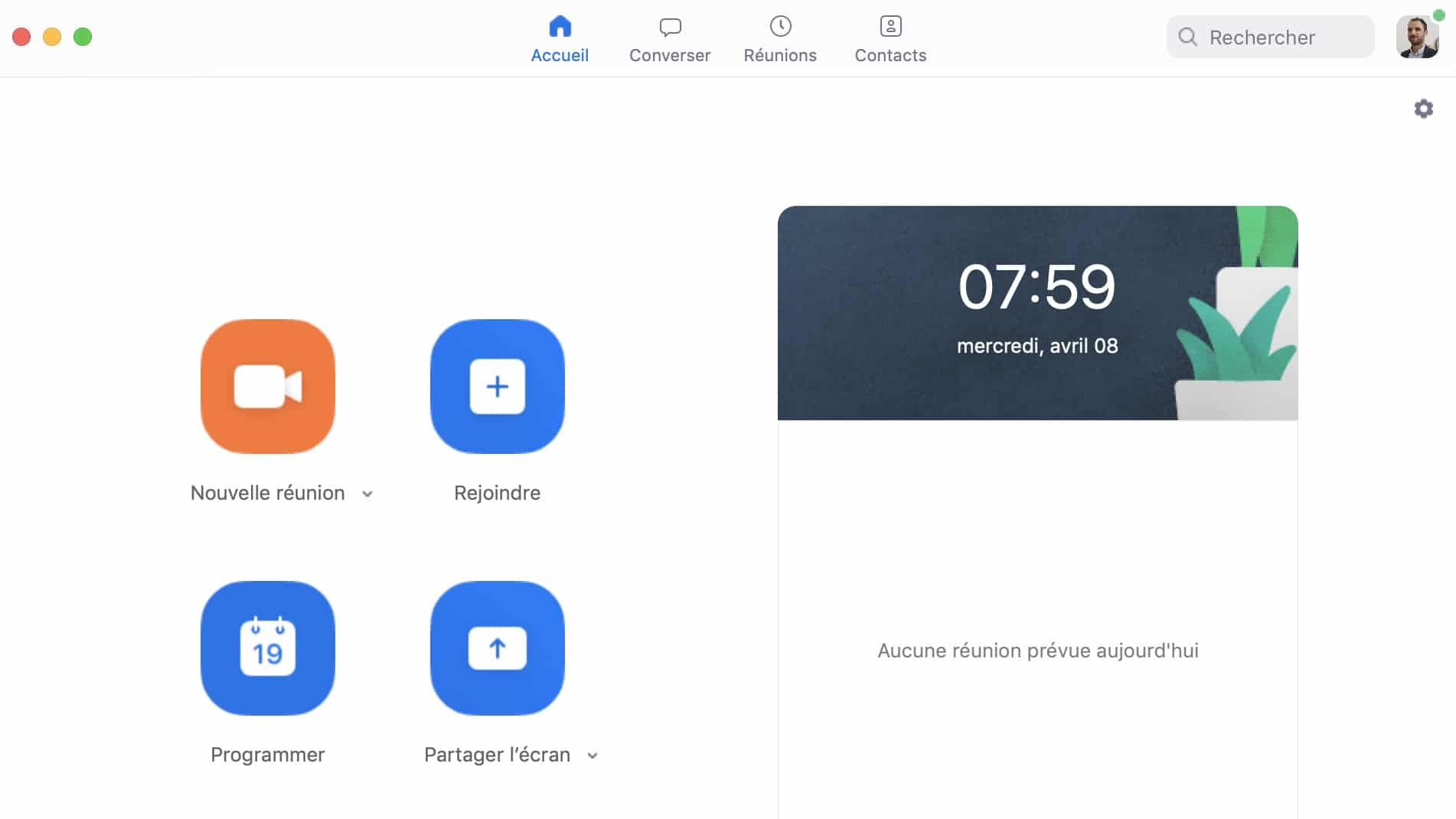 - Démarrer immédiatement une visioconférence en cliquant sur « Nouvelle réunion ».