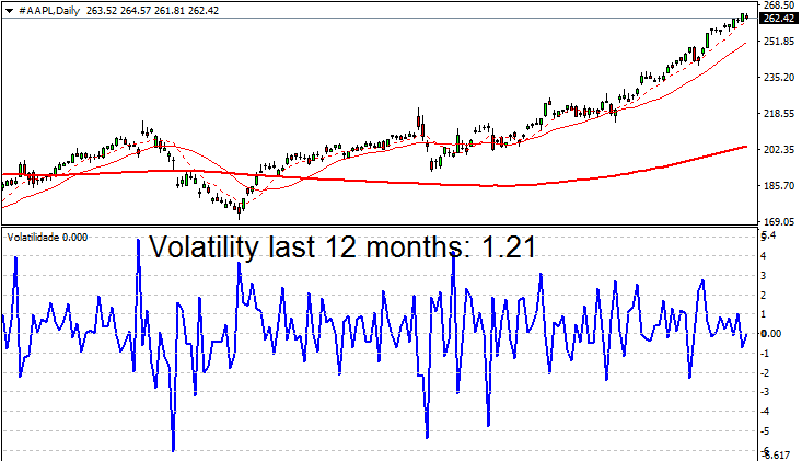 Côté titres individuels, les grands noms de la tech font décoller la volatilité. L’action Apple (#AAPL) affiche un score de 1,21.