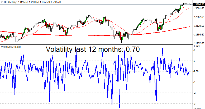 Changement de décor avec les indices. Le DAX, par exemple, affiche une moyenne de 0,70 sur la même période. Voilà un marché nettement plus remuant.