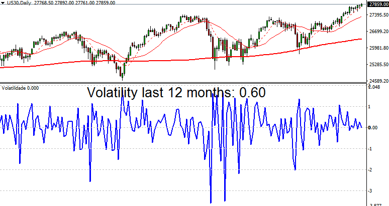 Le Dow Jones n’est pas en reste : volatilité à 0,60, soit un niveau largement supérieur aux principales paires forex évoquées précédemment.