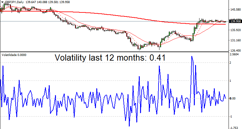 Pour plus de remous, le cross GBP/JPY grimpe à 0,41 de volatilité sur la période, ce qui reste modeste si l’on compare à d’autres classes d’actifs.