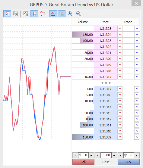 Voici ce qui se passe par exemple sur GBP/USD lorsqu’on s’attaque à un gros volume d’un seul coup :