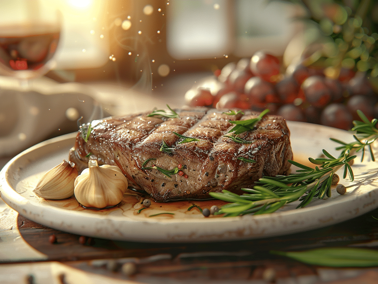 L’art de retourner la viande : Lors de la cuisson, le geste de retourner le steak T-bone influe sur l’uniformité de la cuisson et la répartition de la chaleur. Agissez avec délicatesse et précision, en utilisant une pince plutôt qu’une fourchette, pour ne pas percer la chair et laisser échapper ses précieux jus. Un seul retournement suffit souvent : la patience est de mise pour permettre à la croûte de se former sans brûler, signe d’une saisie parfaite.